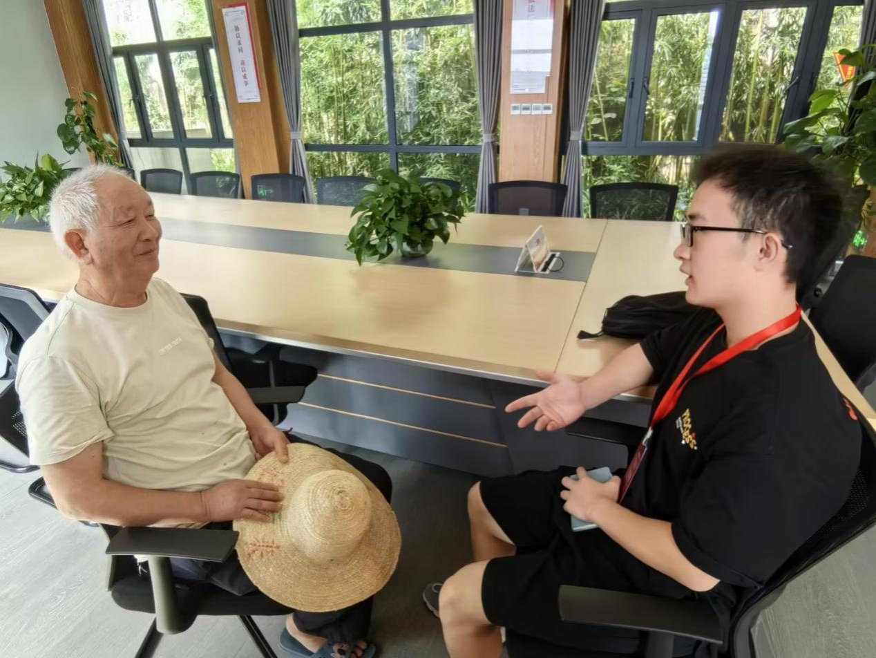 (图为实践队成员与二渡村产业支部书记交流乡村建设)