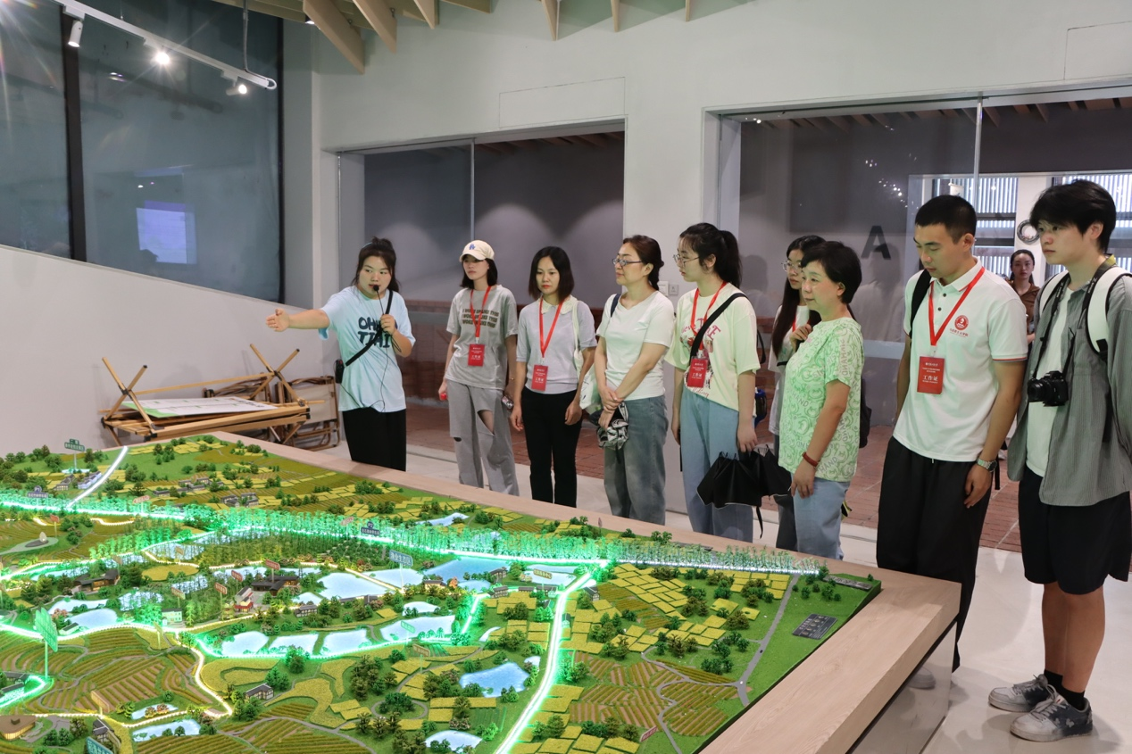 实践队首先来到安石村文化中心,详细了解了安石村乡村振兴具体发展情况,参观了稻鱼共生、复合农业运营区,了解到安石村水田稻鱼共生、旱地粮经复合、农家林果家禽等特色产业及衍生农创。