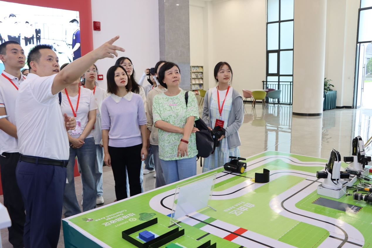 下午3点,实践团队抵达宜宾学院,开展以“沿着习近平总书记指引的方向前进”为主题的实践活动。在宜宾学院求实会堂,实践团一行沿着2022年6月8日习近平总书记考察宜宾学院的足迹,认真参观学习了求实会堂,详细了解宜宾学院党的建设、招生就业、垃圾智能分类运输机器人、智慧农业物联网监控系统、油樟萃取精馏装置、毕业生创新创业代表作品及民营企业招聘等工作取得的显著成绩。