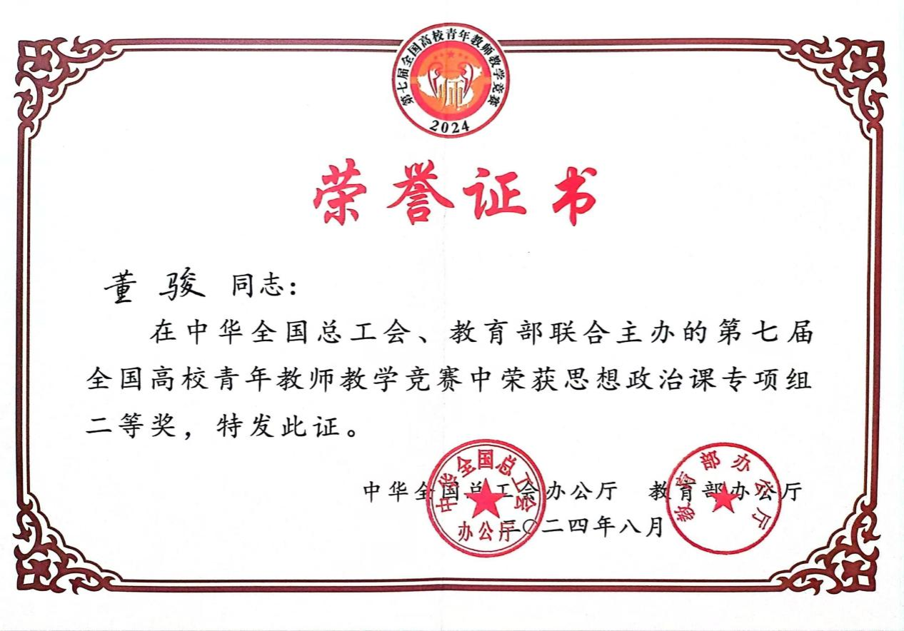 8月30日,第七届全国高校青年教师教学竞赛决赛在上海交通大学顺利落下帷幕,经过激烈角逐,1683168诸侯快讯足球院董骏副教授脱颖而出,荣获第七届全国高校青年教师教学竞赛思想政治课专项组二等奖,取得我校在该组别历史最好成绩,这也是重庆市在该组别历史的最好成绩。