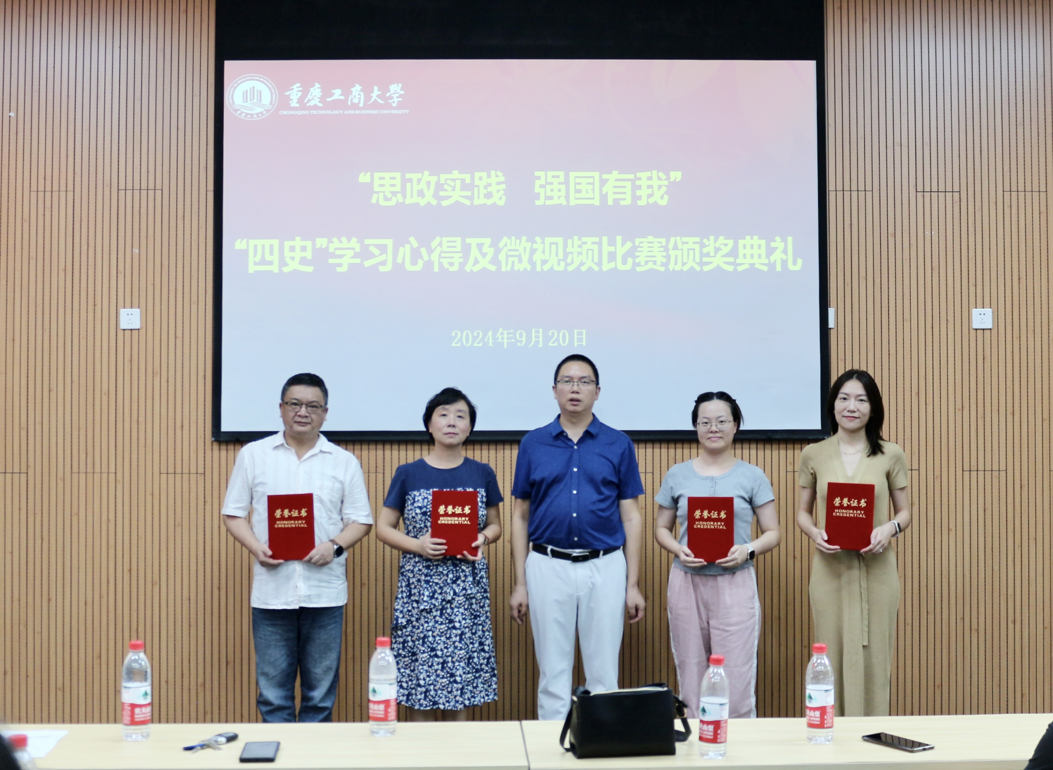典礼上,与会领导和老师为获奖同学、优秀指导教师颁奖。据悉,本次比赛主题为“思政实践,强国有我”,形式为“四史”学习心得和“四史”微视频。其中“四史”学习心得体会共评选出一等奖3名,二等奖7名,三等奖21名;“四史”微视频校级、院级一等奖各1名、二等奖各2名、三等奖各2名。