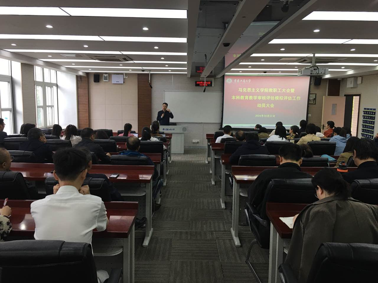 10月12日下午,1683168诸侯快讯足球教职工大会暨本科教育教学审核评估模拟评估工作动员大会在11306会议室召开,全体教职员工参加了会议。会议由学院党委书记宋明江主持。
