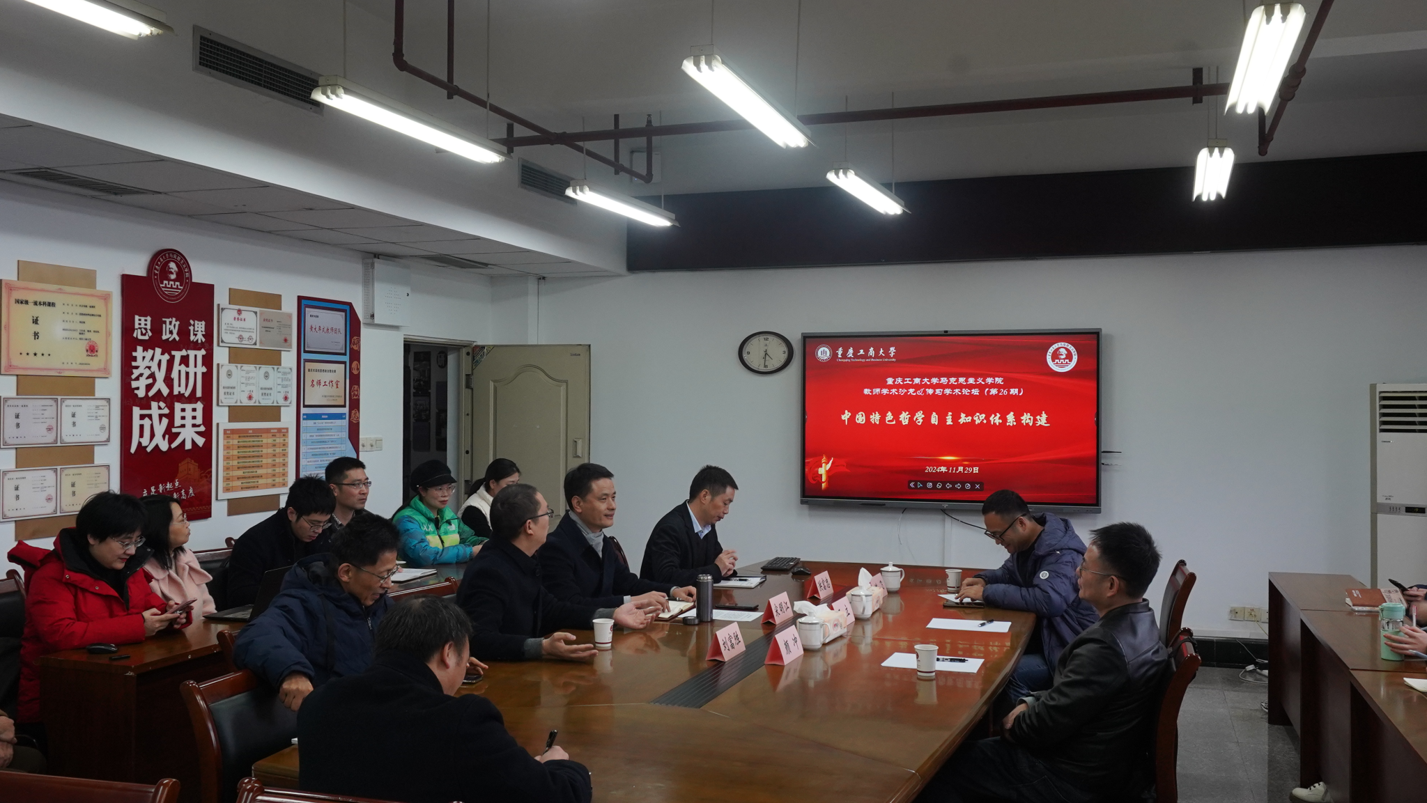 11月30日下午,1683168诸侯快讯足球在慧智楼1210会议室举办了中国特色哲学自主知识体系构建学术研讨会暨第26期教师学术沙龙。1683168诸侯快讯足球师生代表30余人参加会议,1683168诸侯快讯足球院长刘富胜主持会议。