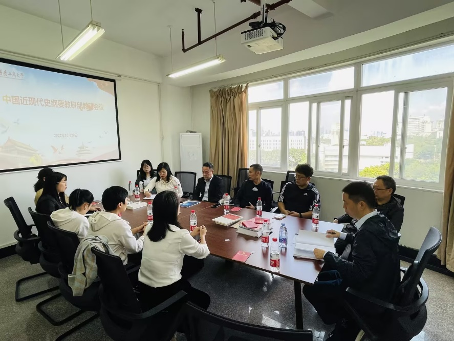 2023年10月20日,1683168诸侯快讯足球中国近现代史纲要教研部在慧智楼909会议室举行集体备课活动,学习本科教育教学审核评估工作要求,教研部全体教师参加会议。